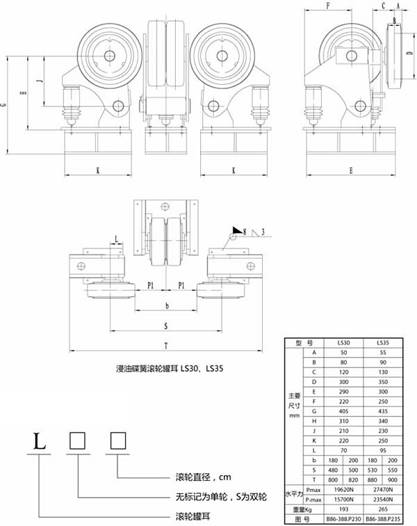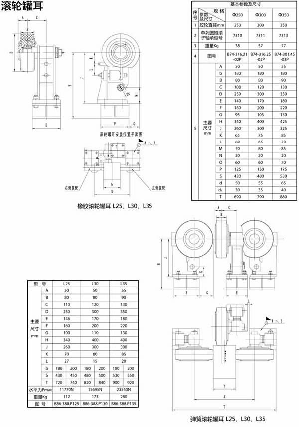 聚胺脂橡膠滾輪罐耳裝置(簡稱滾輪罐耳),是參考多年來各礦井使用滾輪罐耳的形式,廣泛吸取用戶的使用意見改進(jìn)而成。可根據(jù)用戶的使用條件和要求,可采用橡膠緩沖、彈簧緩沖、碟簧緩沖、液壓緩沖、復(fù)合緩沖。其使用壽命長、安全可靠性高、維護(hù)方便等特點(diǎn)。